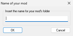 You can insert the name of your mod's folder, make sure to avoid common names so mods don't get overwritten if 2 with the same name exists.