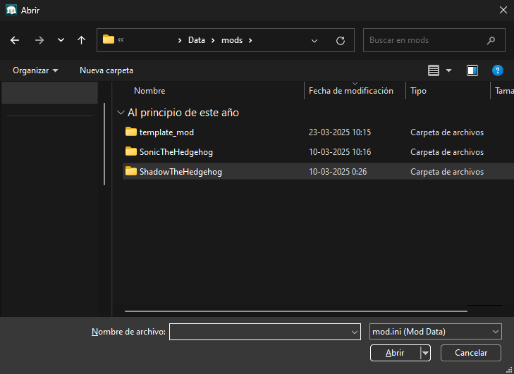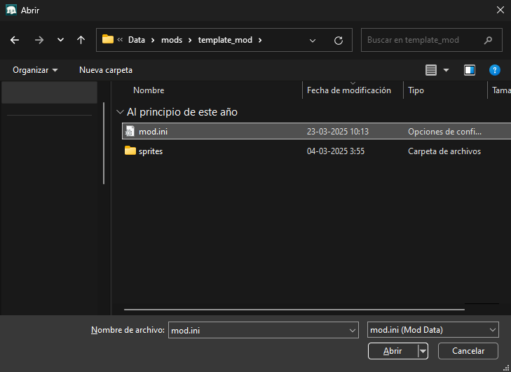 You have to go to your mod's folder and select "mod.ini", then, double click it or press Enter.
