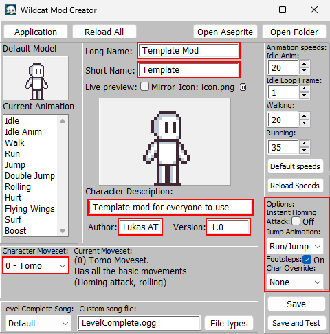 Once you have learned how to create your mod and how the mod creator screen works, it's a good opportunity to start making your own mod.You can start by getting the basic stuff done, like the character's information, moveset, etc.