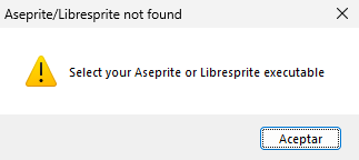 First you want to set-up for Aseprite or Libresprite folder, click on the "Open Aseprite" button at the top bar.If it's your first time using the mod creator tool (or if the program can't find your Aseprite/Libresprite folder) you'll get the following pop-up: